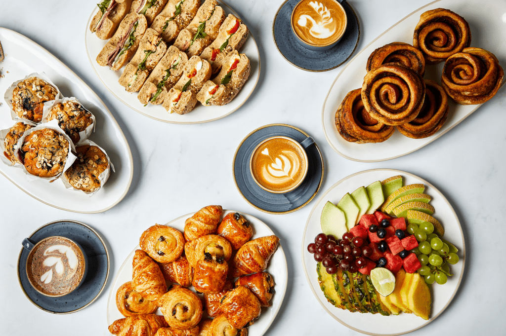 Absolutely. Our breakfast delivery service starts at 8:00 AM, offering fresh pastries, breakfast rolls, and fruit platters delivered directly to your reception at Stockley Park.