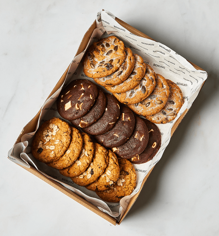 The perfect sweet finish to any boardroom lunch. Our Artisan Mini Cookie Platter Box features 18 bite-sized treats, freshly baked to achieve the ideal balance of a soft, chewy centre and a perfectly crisp edge.