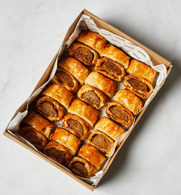 Our Signature Cumberland Sausage Roll Platter Box is a refined take on a classic British favourite. We use premium, high-welfare Cumberland pork, encased in our signature all-butter, golden-baked pastry. These are designed to be enjoyed as a perfect, easy-to-serve savoury bite.